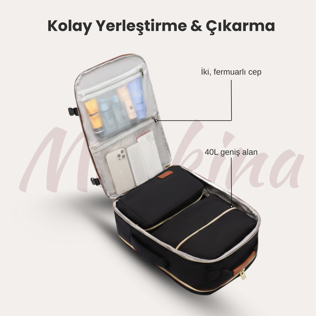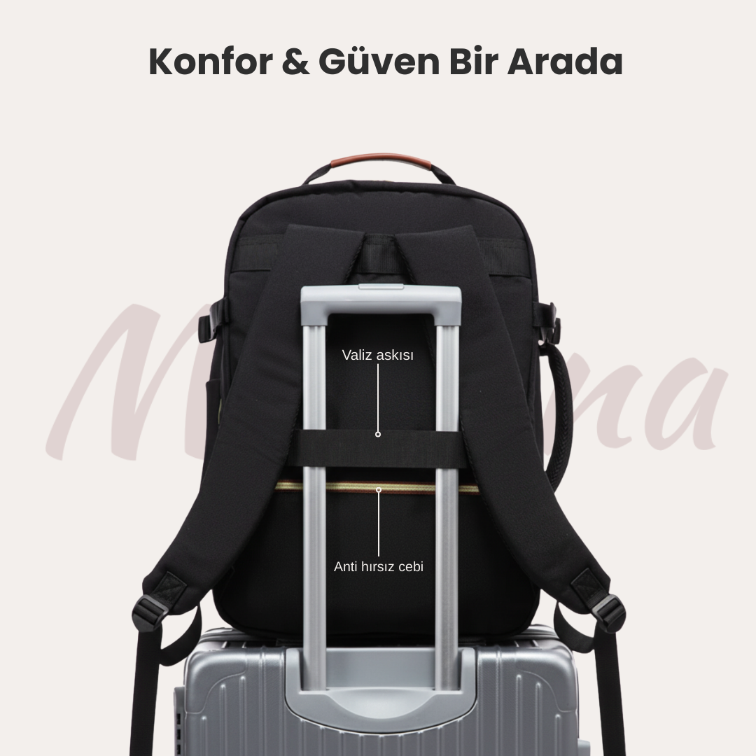 ✈️ 40 litrelik kapasitesiyle bu sırt çantası, çoğu havayolunun kabin bagajı standartlarına uygundur.