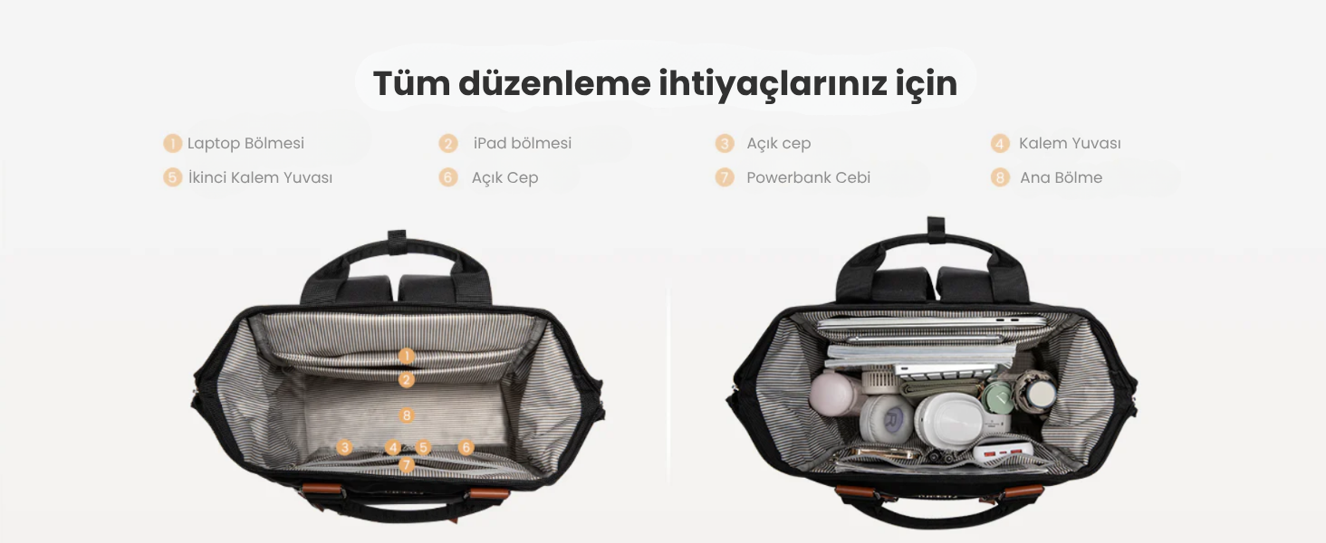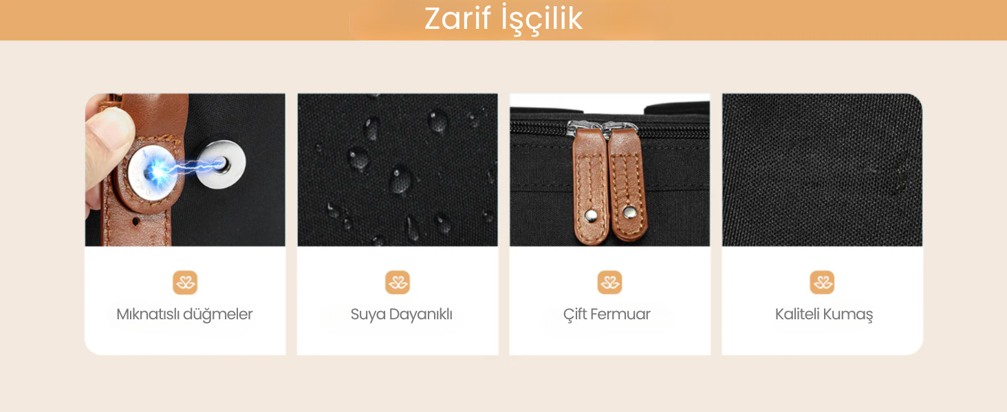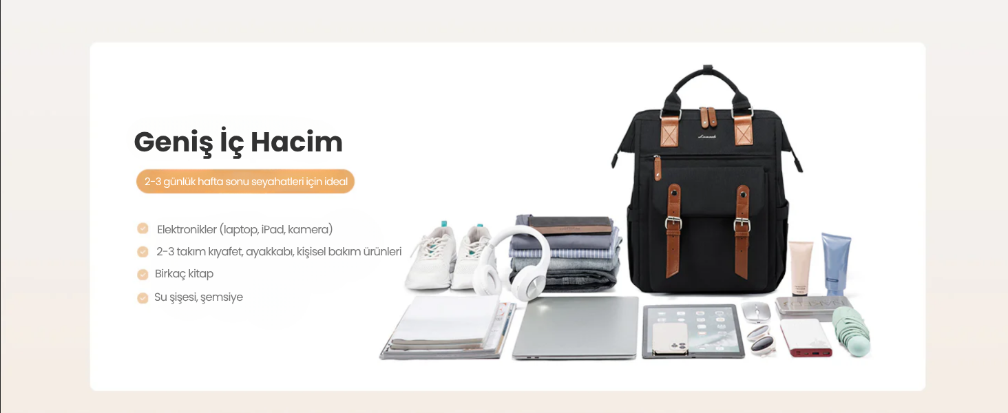 💧 Suya dayanıklı kumaşı sayesinde ani yağmurlarda bile eşyaların güvende.